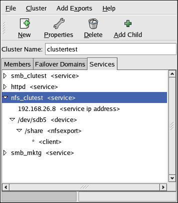 For instructions on configuring a service using the Cluster Configuration Tool, refer to Section 3.10 Adding a Service to the Cluster.